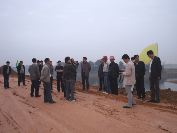 文林副廳長仔細察看了項目施工現場情況,并耐心聽取了我司項目經理雷才文的工程情況匯報。梓埠1標自去年11月份開工以來,目前已完成了馬鞍山電排站、周灣排灌站、堤腳拋石固腳、堤身深層攪拌防滲墻等項目,堤身土方填筑及混凝土預制塊制作正在緊張進行。文副廳長聽完匯報后,對梓埠1標的施工工作提出了幾點要求,一是業主單位要盡快解決好征地問題,為工程的順利實施創造良好條件;二是施工單位要抓住晴好天氣,加快堤身土方填筑及預制塊制作進度,并加強質量控制。